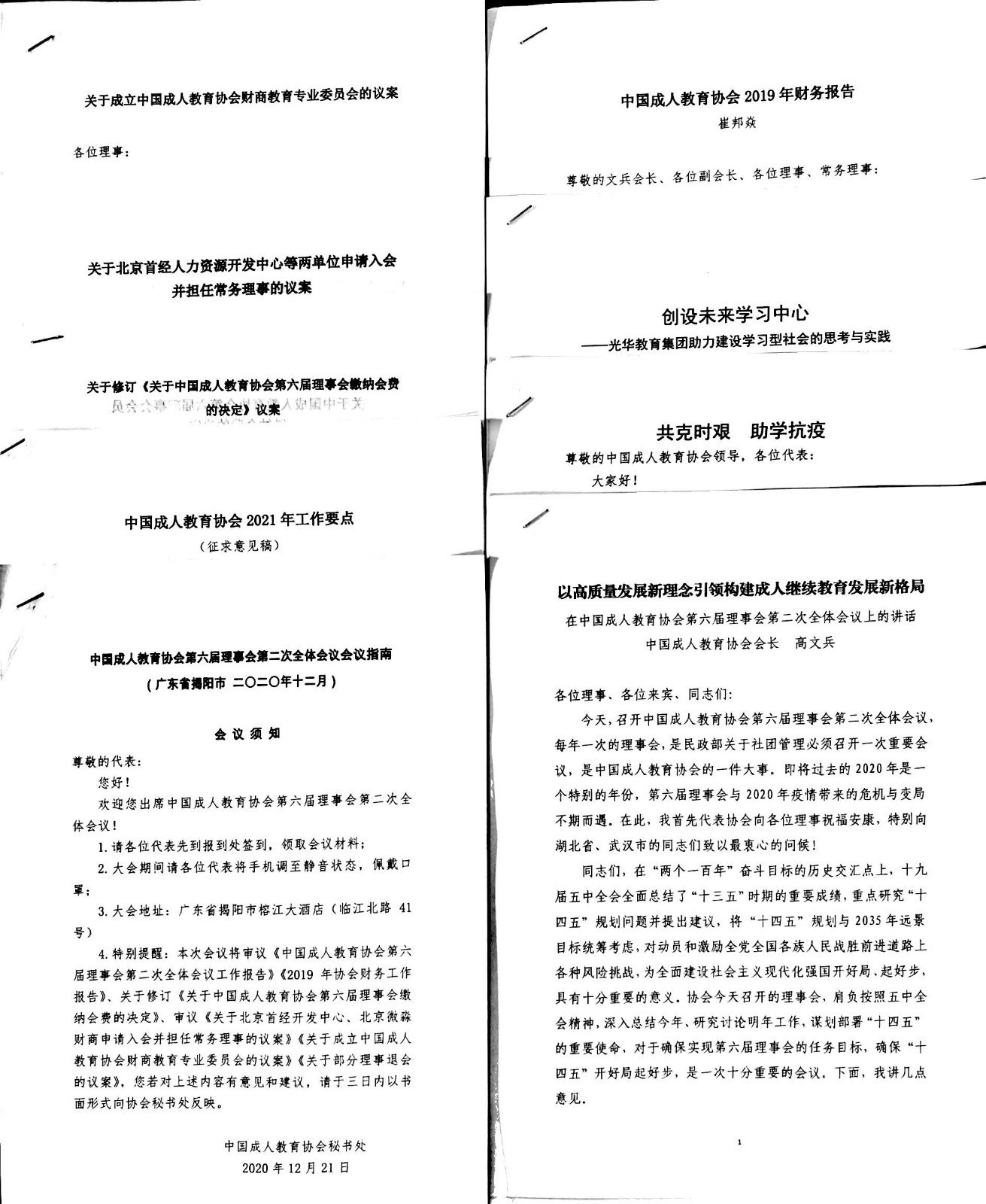 为深入学习习近平总书记关于教育的重要论述,贯彻落实党的十九届五中全会精神和全国教育大会精神,总结交流2020年协会工作,研究讨论2021年及“十四五”我国成人继续教育深入贯彻党的十九届五中全会精神,落实新发展理念,推进新时代高质量发展的计划及规划。定于2020年12月21-24日在广东省揭阳市召开中国成人教育协会第六届理事会第二次全体会议。现将有关事宜通知如下: