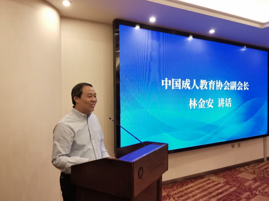 中国成人教育协会副会长林金安出席开班式并讲话。他指出,"十四五"以来,中国成人教育协会积极配合教育部相关部署,不仅一如既往地重视推动全民终身学习活动,同时,也高度重视职成教育助力乡村全面振兴的人才培育活动。要求全体学员理解六个坚持的深刻内涵--坚持人民至上,坚持自信自立,坚持守正创新,坚持问题导向,坚持系统观念,坚持胸怀天下,将本次培训学习收获,融入职成教育支持乡村振兴可持续发展行动中,为全民终身学习、为建设全面乡村振兴和乡村可持续发展工作,再添新砖瓦,再创新成绩。