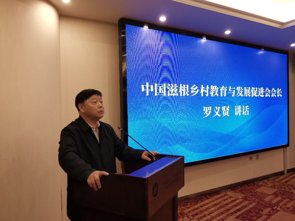(图:中国滋根乡村教育与发展促进会会长罗义贤讲话)
