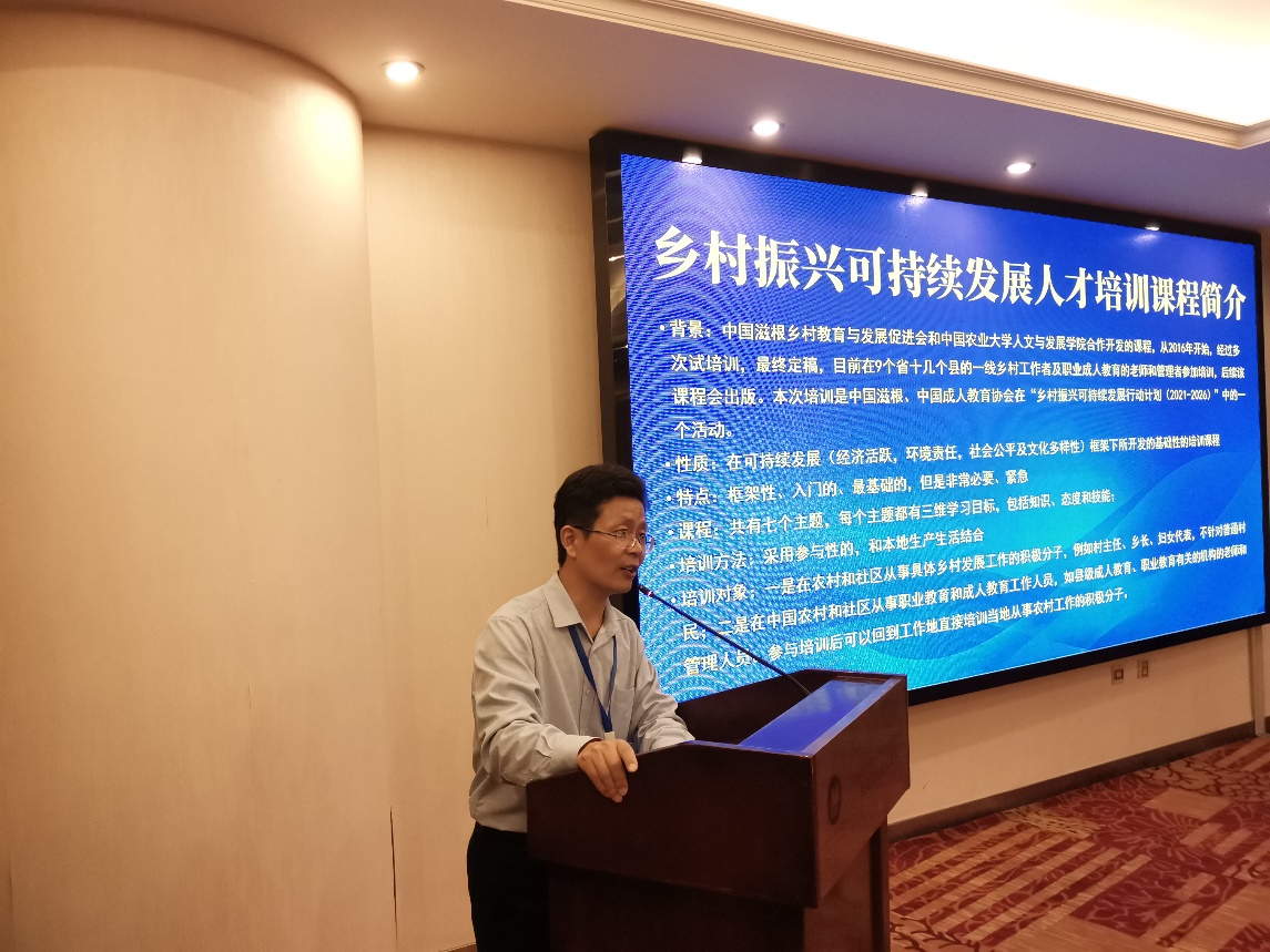 中国滋根乡村教育与发展促进会会长罗义贤在开班式上介绍说,中国滋根一直与中国成人教育协会合作,分别在贵州省铜仁市、河北省青龙县、浙江省宁波市等地举办了多次"乡村振兴可持续发展人才培训",并且跟踪和指导学员培训后的实践行动,结合全民终身学习和乡村振兴教育相关活动,总结成果、推广经验。